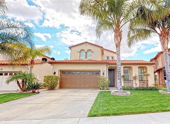 Beautiful view home featuring beautiful hardwood floors downstairs and plantation shutters upstairs and down. Enjoy the gourmet kitchen with granite center island and breakfast bar, stainless steel appliances, granite counter tops and an eating area off kitchen that opens up to the family room with a fireplace and media niche, perfect to entertain friends and family. Downstairs also includes a formal dining room, formal living room and a separate wing with a downstairs bedroom and full bath plus a powder room for guests. Spacious master suite with dual sinks, oval jetted tub, shower and large walk-in closet. Wrought Iron banisters, Crown Molding, Custom hand painted murals. Entertainer's backyard with great views! 3 car tandem garage. NO MELLO ROOS!!!!