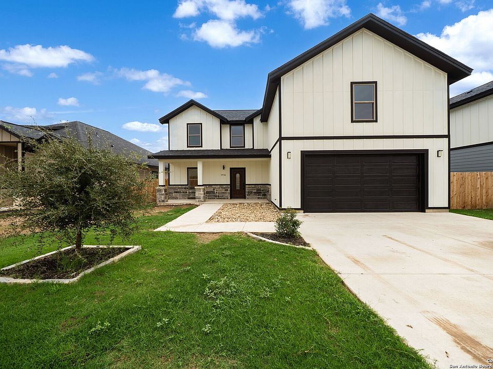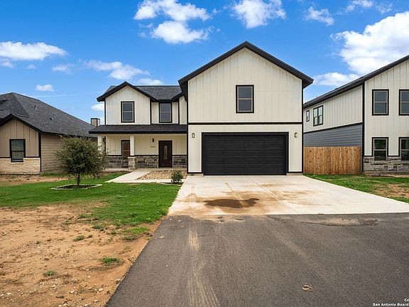 This beautiful new construction sits on a 0.2582-acre lot in Somerset, just a short drive from San Antonio and only minutes from Somerset ISD. Step inside to tall ceilings that create a bright and welcoming atmosphere. The home offers 3 bedrooms, 2.5 bathrooms, a study, a media room, and a cozy nook, designed for comfortable modern living. The downstairs master suite features a dual-sink bathroom, separate tub, and a spacious walk-in closet. A mudroom adjacent to the 2-car garage adds practical convenience. The kitchen boasts plenty of cabinets and a large island, perfect for cooking and entertaining. Upstairs, the media room provides a great space for movies, gaming, or family fun. With an open floor plan, contemporary finishes, and a generous lot, this home combines style, functionality, and modern comfort in a peaceful Somerset neighborhood.