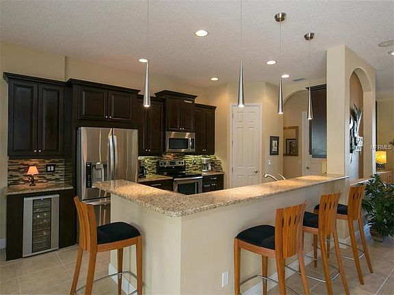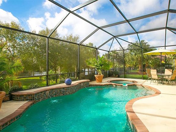 Enjoy the privacy and lovely lake views this exceptional three-bedroom, three-full-bath home in Stone Walk offers. An office, plus an additional den or game room, complete the design. Experience wonderful indoor-outdoor Florida living with full pocket sliding doors opening to a large screened lanai, complete with a stylish wet bar, salt-filtered pool and spa. The southern exposure views of the wooded area and lake are so unique. Interior features include designer light fixtures and ceiling fans, tray ceilings with recessed lighting, surround sound throughout, large ceramic tile floors, stainless steel appliances and solid wood cabinetry, plus beautiful granite countertops on all counter spaces. In addition, the home has upgraded outdoor lighting and is beautifully landscaped all around the home, including a small, fenced green area. Convenient access to I-75 and only a short drive to shopping, Gulf of Mexico beaches and historic Venice. No CDD and low HOA fees.