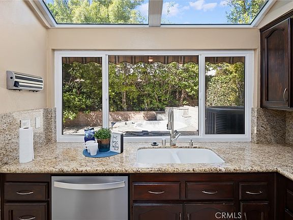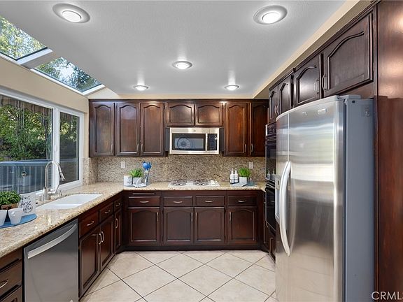Featuring an expansive Master suite with vaulted ceiling, walk-in closet, double sink, soaking tub and a sky light. Kitchen has beautiful cabinets, granite counters and stainless-steel appliances (fridge, dishwasher and microwave are included). Living room and adjacent (separate) dining room are open with LOTS of natural light. The home has several upgrades in the last 2-3 years: dual paned windows throughout, AC system, water heater, recessed lighting, electrical panel with solar panels. Water and electric bill were $600/mo and are now averaging $100/mo. This home also has a gas fireplace, indoor laundry (gas) hookups, central vacuum system, storage and a 2-car garage. Entertain with a very private back yard with a working jacuzzi. This is a 24-hour guard gated community. HOA covers all common areas (2 swimming pools, 6 lighted tennis courts, basketball court, beach volleyball court, a playground and YES a dog park). Centrally located near shopping and dining: near the Vineyards and the Porter Ranch Town Center, Whole Foods, local hiking trails and parks. Let’s not forget the Blue Ribbon Schools if you have children. This home will not last so arrange your showing today