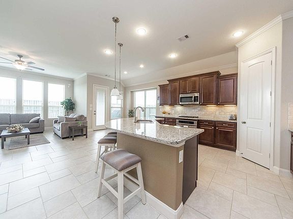 This incredible 4 bedroom 2.5 bathroom Lennar "Whitney" home is located in the award winning gated community of Canyon Lakes West. The beautiful, move-in ready home is Energy Star certified, open, bright, and airy with many builder upgrades. The kitchen is spacious and has a large island with seating - a perfect place to entertain or enjoy a meal with family. You'll enjoy an extended patio with gas stub, grill included & plenty of space to play. As an added bonus, your private, fenced-in backyard has open space behind, with no back neighbors. Homes like this in Cypress are highly prized - this is a must see!
