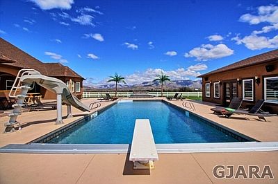 STUCCO RANCH STYLE HOME ON 37 ACRES,FULLY IRRIGATED,FENCED,TWO PONDS,SALT WATER SWIMMING POOL,POOL HOUSE, HOT TUB, BUILT-IN BBQ/PLUMBED BAR AREA AND GREAT VIEWS. OUTSIDE ALSO INCLUDES 2-CAR DETACHED GARAGE/SHOP, GREEN HOUSE,2-STORAGE SHEDS,25X60 COVERALL,60X60 LEAN-TO. THIS HOME BOASTS GRANITE COUNTERS,OAK FLOORS WITH 6 BASEBOARDS,LARGE MASTER SUITE W/2 WALKIN CLOSETS,TRAVERTINE FLOORS IN BATH,JETTED TUB,LARGE SHOWER INCLUDES BODY SPRAYS & TWO HEADS, ALL GUEST BEDROOMS HAVE WALK-IN CLOSETS, GOURMET KITCHEN WITH SOFT/CLOSE DRAWERS,COPPER SINK, WINE FRIDGE,GAS RANGE, CONVECTION OVEN & MICROWAVE,TRASH COMPACTOR,XL PANTRY,$3S,OOO WORTH OF AUDIO AND SURROUND SOUND EQUIPMENT INCLUDED,THEATER ROOM, WATER FILTRATION SYSTEM, AUDIO SPEAKERS THROUGHOUT HOME, LARGE LAUNDRY ROOM WITH UTILITY SINK. ALL OF THIS AND MORE IN THIS 5047,SQ FT. HOME WITH 5 BEDS, 5 BATHS,2 CAR ATTACHED GARAGE, BUILT IN 2009