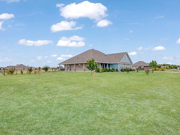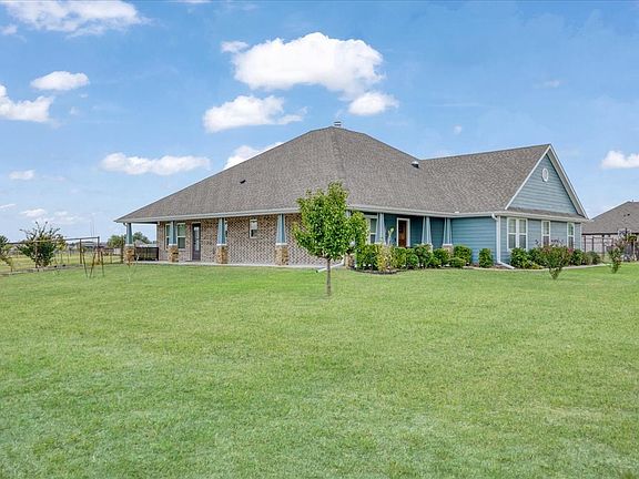Welcome to Caddo Fork Estates with NO HOA and NO CITY TAXES!! Discover the perfect blend of country charm and modern comfort in this exquisite 3-bedroom, 2-bath home with FRESH EXTERIOR PAINT, tucked away on a corner lot just outside the city limits of Caddo Mills, TX. A spacious 530 sq. ft. front porch sets the tone, inviting you to relax and take in the peaceful surroundings and lovely views of your pipe fenced back yard—The additional side and rear covered porches provides even more outdoor living space. Inside, the open floor plan boasts lovely solid wood floors, a 15x20 great room centered around a warm and cozy wood-burning fireplace The chef-inspired kitchen offers a stunning 8x5 granite island with electric, farmhouse sink, granite countertops, abundant cabinetry, a large pantry, and an electric range—open to the breakfast and living areas for seamless entertaining. The master bedroom is spacious and offers carpeted floors, ceiling fan, & a HUGE CUSTOM walk in closet and flows effortlessly into the spa-like master bath with skylight, Garden tub, separate tile shower and his and her vanities. The secondary bedrooms are roomy with ample closet space, lovely carpet and ceiling fans. In addition, the property offers an electric gate for privacy and is nestled on 1.509 acres, with the backyard enclosed by pipe fencing and two gates. For the hobbyist, craftsman, or extra storage needs, you’ll find NOT ONE, but TWO INSULATED WORKSHOPS: a 24x24 workshop with electric & a 10' RU door, 2 exterior doors & an extended 20X24 front covered carport with concrete parking; and ANOTHER 23x20 workshop with electric, a 10' roll-up door with a 20x11 rear overhang for outside parking or storage. This home checks every box for luxury, comfort, function, while country living makes it perfect for the kids and pets with plenty of room to romp! Just minutes from town, yet offering the tranquility you deserve. A MUST SEE!