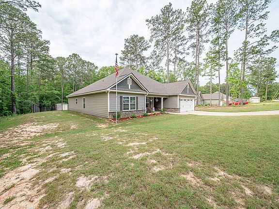 This spacious and well-maintained 4-bedroom, 2-bath home, just 4 years old, sits on over 1.6 acres in the heart of Smiths Station—only minutes from Lake Harding and with no HOA. The home offers a warm, open layout and a peaceful setting that's perfect for family living. Inside, the open floor plan includes a kitchen with granite countertops, a custom subway tile backsplash, and stainless steel appliances. The living area features a cozy fireplace with tile and shiplap accents. The primary suite is a true retreat, with a double vanity, quartz countertop, tiled walk-in shower, and separate soaker tub. The three additional bedrooms are generously sized, offering flexibility for family, guests, or a home office. The 2-car garage is spacious, and there's also an outbuilding for extra yard and outdoor storage. Outside, you'll enjoy a fully fenced, private backyard with mature trees and a covered patio for relaxing or entertaining. The home also includes a whole-house water softener system for added convenience. Conveniently located with easy access to both Columbus and the Opelika/Auburn area, this home offers the perfect blend of privacy and accessibility. Come see all this home has to offer!