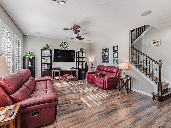 Welcome to this stunning 4-bedroom, 3.5-bathroom home perfectly situated on a beautiful lakefront lot in Long Lake Ranch. From the moment you arrive, you’ll be impressed with the lush landscaping, brick-pavered driveway, and timeless curb appeal. Step inside to discover an open-concept floor plan filled with natural light, highlighted by triple sliding glass doors and elegant plantation shutters throughout. The formal dining room offers the perfect space for entertaining, while the chef’s kitchen boasts a large center island, double ovens, abundant cabinetry, and extra storage tucked under the stairs. Gorgeous wrought-iron stair railings and upgraded laminate and tile flooring (no carpet!) add style and durability to every room. The expansive bonus room offers endless possibilities—game room, media room, or home office. Retreat to the huge master suite featuring tray ceilings and a spa-like ensuite. Outdoors, enjoy serene lake views from your large screened-in patio or unwind under the charming pergola in your fenced backyard. This community is packed with resort-style amenities, including a clubhouse, pool, splash pad, playgrounds, dog park, tennis and basketball courts, fishing dock, and even a kayak launch! With a brand NEW ROOF and countless upgrades, this home is move-in ready and truly has it all.