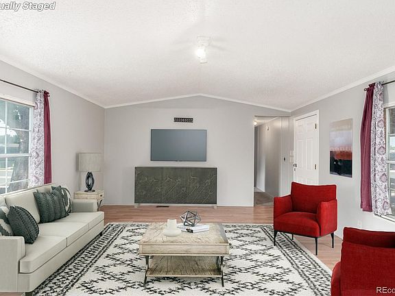 A sense of comfort and functionality defines this three-bedroom, two-bath manufactured home, presenting an approachable opportunity for homeownership without compromise. Offering 1,216 square feet of living space, the thoughtfully designed layout emphasizes light, flow, and connection, ensuring each room feels purposeful while maintaining a welcoming charm. The kitchen serves as a bright centerpiece, enhanced by a skylight and window that draw in natural light to highlight honey-toned cabinetry and parquet flooring. A clever passthrough with counter seating connects the kitchen to the living room, allowing conversations to carry easily and making entertaining feel effortless. The living room itself provides an inviting atmosphere with space for both everyday living and gatherings, while the open flow creates continuity between shared areas. Each bedroom is generously sized and well-appointed with excellent storage, offering flexibility for rest, work, or hobbies. The primary suite is a retreat of its own, complete with a large soaking tub, a separate shower, and ample vanity space designed for comfort and ease. Functionality continues with the convenience of in-unit laundry, while outside, mature trees and an adjacent greenbelt bring a sense of calm and privacy to the setting. This natural backdrop offers a refreshing oasis just beyond the door, a rare find at this price point. Practical details make life simpler, too, with the HOA handling road maintenance and snow removal, providing year-round ease and peace of mind. Together, these elements create a home that is both attainable and enriching, blending affordability with thoughtful design and a connection to its surroundings.