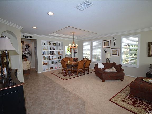 Wonderful one story entertainers delight located on CUL DE SAC with a large yard. NO MELO ROOS! This home has a large living room with lots of windows. The kitchen/family room combo makes this a prime choice. Kitchen with island and lots of counters space. Family room with fireplace and wall of windows looking to back yard. Terrific master bedroom/bath. Sliding glass doors to the back yard. The bath features a tub, dual sinks, and a walk-in closet. Inside laundry. The park-like back yard is fabulous with a huge patio cover and a built-in BBQ 2 car garage with extra storage. This home also features crown molding, custom shutters, built-in cabinets, and much more. Association includes pools and spa