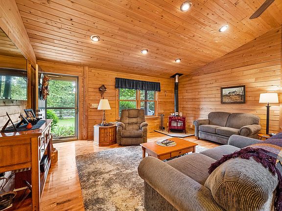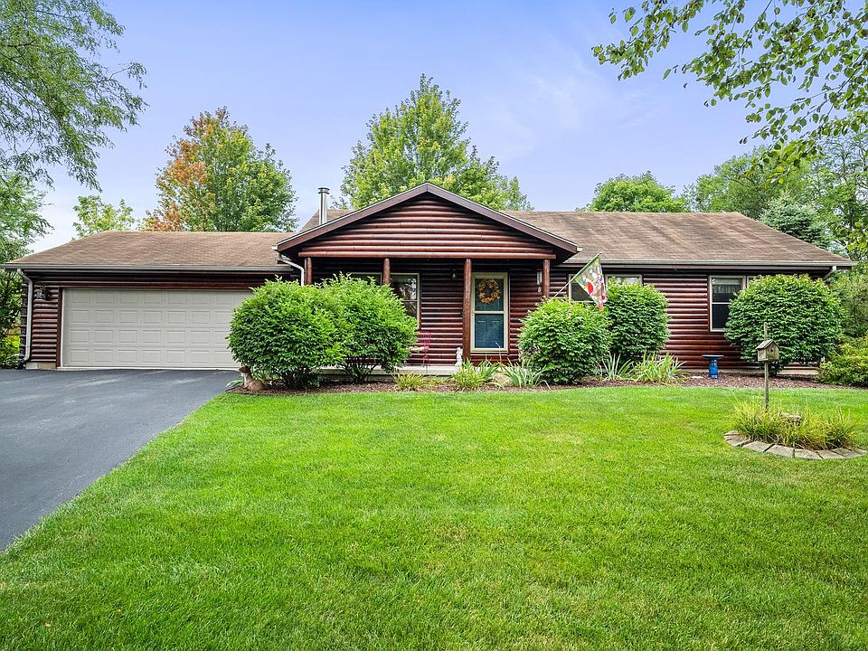 Dreaming of a cabin in the woods, but still need easy interstate access and community resources? Look no further! First time on the market, this custom log home was constructed in 2006 and expertly maintained. Placed on a pristine & private oversized lot, you don't have to have to go far for it to feel like vacation every day. Inside you will find three ample bedrooms, two full bathrooms, open concept kitchen/living room, and a full basement. The expansive covered front porch welcomes you, perfect for your morning coffee and watching the hummingbirds. Light and airy; vaulted ceilings, recessed lighting, Andersen windows, and skylights make this inclusive space seem infinite! Adorable wood burning stove in Crimson red will match any decor with its timeless cast iron finish! Oak hardwood flooring carries throughout the kitchen, dining room, and hallway. Stunning gourmet kitchen offers solid hickory cabinetry with crown moulding and hardware. Sparkling new stainless steel appliance package included with washer and dryer too! Oversized peninsula, topped with solid surface, Corian countertops. A great place to meal prep or used as a serving buffet while entertaining. The adjacent dinette with pantry and backyard views, comfortably seats four to six. Master bedroom with full ensuite bathroom is crisp and clean with neutral fixtures and paint. All three bedrooms equipped with Hunter ceiling fans, custom draperies by Eddie Zs, and top of the line Karastan carpet. Full dry basement awaits your finishing ideas! Deep pour concrete foundation! Located on a partially fenced half acre lot, with no neighbors to the east; you will experience the utmost privacy. Back yard offers a beautiful brick paver patio and fire pit; surrounded by mature trees, shrubs, and perennials. Adorable classic red storage shed with loft makes storing your lawn care equipment easy and OUT of the finished two car garage! Exterior stained 2021! New Hot Water Heater! Solid Six Panel Doors, Water Softener & RO system owned and in place! Oversized drive way with turn around for additional parking! Too much too list, this gorgeous one of a kind home is sure to impress! See it! Love it! Buy it! #LogCabinLife #EnergyEfficient #Custom #Elwood #RealEstate