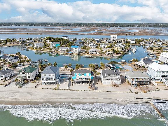 Unparalleled Opportunity! Experience this one-of-a-kind, luxury home using the Matterport and Drone Videos linked as Virtual Tours in the listing. Located on the Garden City Peninsula this Direct Oceanfront home with a private, in ground pool INCLUDES your personal, deep water, floating dock AND your own private boat landing! Sunrises over the ocean off the deck and sunsets off the dock. Oceanfront Peninsula homes with deep water docks are unique and rarely come onto the market. This home is a masterpiece of stylish renovation that needs to be viewed firsthand to appreciate how its beach decor and renovated design blends naturally with the ocean, beach and creek. Private showings by appointment only. ***For investors interested in cash flow the existing lender may be willing to offer below market funding for qualified buyers in conjunction with seller buydown. Call your agent for details!!***
