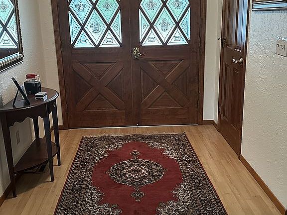 All interior doors including closet doors are paneled wood finished in mahogany color in excellent condition. Doors have Schlage hardware; front door has Schlage keyless hardware. All exterior lights are controlled by programmable light switch timers to control energy consumption. New carpet was installed November 2023, in both bedrooms; no pets were ever kept by owner.