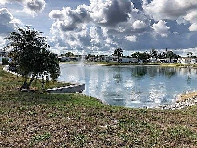 If you're looking for a newer and beautiful 55+, pet-friendly community that is close to beaches, shopping, great restaurants, medical facilities, golf courses, and the world-famous "Tarpon Springs Sponge Docks" then The Meadows is the place to call home! This 1991 home sits on a perimeter lot and has an attached garage! The home offers cathedral ceilings and is nicely landscaped. The living room features neutral colors and walls, sliders to the Florida room and is open to the dining room. The kitchen features laminate flooring, neutral cabinets and counters, bar height counters and plant shelves. The dining room has a built-in for storage and laminate flooring. The master bedroom is huge and spans the entire width of the home. It features his and her closets and has a large bath ensuite with a step-in shower/toilet room with skylight, a huge double vanity and makeup area. The second bedroom has laminate flooring, ceiling fan, and a large walk-in closet. The guest bath has a tub/shower combo, tall toilet, tile look linoleum, tall vanity and a skylight. The lanai has newer screened, and is a great entry to the home. It is beautifully landscaped and has sliders to the living room. The laundry in interior and has tons of storage with a built-in desk. associated with the community, park, or home from the community/park manager. includes water, sewer, lawn, trash, cable, wifi