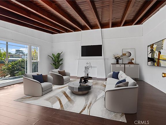 This California-cool private oasis is the perfect place to enjoy these first hints of crisp autumn air. Tucked beyond brand-new wooden fencing, this freshly landscaped yard offers a spacious and serene space, filled with native, drought-tolerant plants. Step inside this charming bungalow where you enter into a huge living room with floor-to-ceiling windows, vaulted wood-slat detailed ceilings and a grand decorative fireplace. Large dining room and family room located adjacent to the kitchen, which is complete with a generous amount of cabinets for storage, stainless steel sink and appliances, and separate kitchen-sunroom area. Off the main hallway, you’ll find two bedrooms each featuring ample closet space and original hardwood flooring, and a bright full bathroom with porcelain pedestal sink. Separate laundry room area with W/D and back door to the detached garage and driveway. Newer dual-pane windows throughout, and central HVAC.