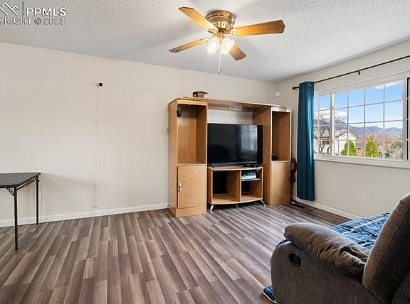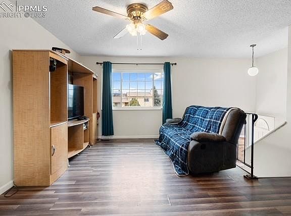 4 bedroom, 2 bath bi-level home in a great neighborhood features 2 living areas, private back yard with mature trees and an over-sized garage. Upper level includes two bedrooms and a full bath as well as the kitchen, living room and dining room. The lower level also features two bedrooms with full bath and a large family room which lead to the garage and backyard. Close to Ft. Carson, World Arena, schools, shopping and hiking trails.