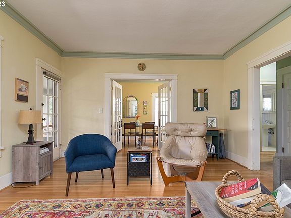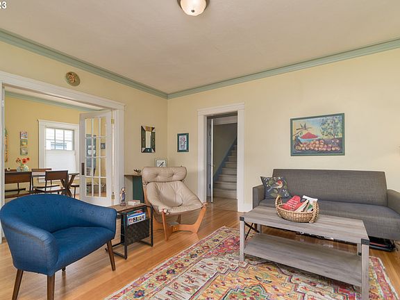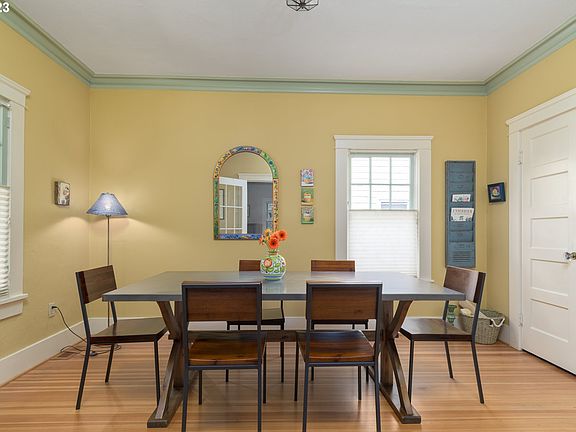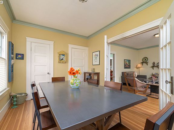 Cozy and quaint 1935 home nestled into the South University neighborhood. 4 beds, 2 full baths with 1504 SF. A classic covered bungalow porch leads into living spaces with original wood floors, crown mouldings, wood cabinets. French doors to the dining space. Bathroom with clawfoot tub and lots of light- charm abounds! One bed and full bath on the main; 3 beds and second full bath on the upper level. Adorable back yard with lawn, landscaping and a deck. Fantastic location near UO. Separate entrance to basement.