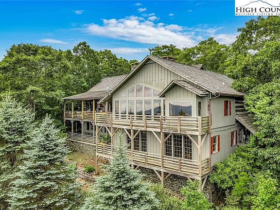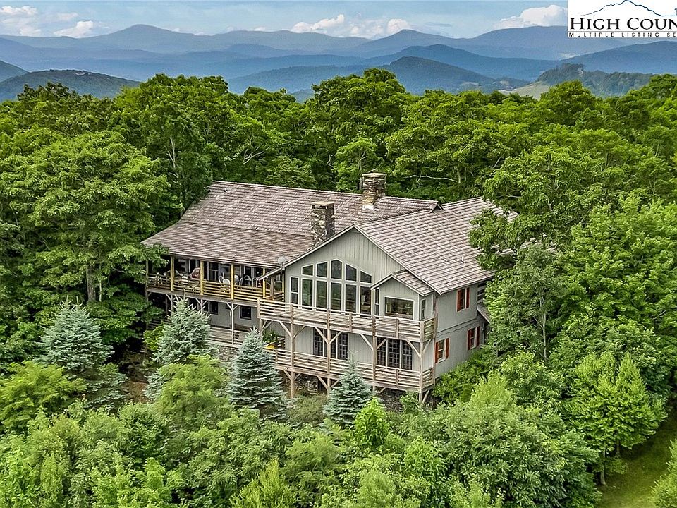Enjoy 50 MILES of Panoramic Long Range Layered Views from this 3600 square foot log home in the desired community of Stonebridge, an enchanting and timeless antique log home community. Live the dream of waking up each morning to the beautiful and far reaching mountain vistas, including Pilot Mountain. The backside of the home features floor to ceiling windows that showcase the sea of mountain tops and 2 layers of decks with multiple access points for easy flow when entertaining. From the sizable foyer, walk into the truly great room which includes the living room, kitchen, and dining room, all with the most breathtaking views on the mountain. In the evenings, after sunset, the focal point of the great room will be one of the largest native stone fireplaces in the community. Wake up to majestic morning sunrises in the main level's impressive master suite with fireplace, sitting area, full bath and walk-in closet. The master bath tub is set in front of a large picture window to fully appreciate the fabulous scenery. To complete the main level there's a large guest bedroom with access to deck, full bath, laundry closet, and 2 car garage with custom built cabinets along two walls. On the lower level you'll find a bunk room, library/den, family room and bonus room with full bath. Off the lower level family room, you'll find a large closet that would be perfect for a wine cellar. Lower level also offers 680 square feet of additional (unfinished) space for storage. This home includes 4 masterly crafted stone fireplaces - 2 wood burning and 2 with gas logs. All rooms are extremely spacious and with an unbelievable amount of storage. This home could easily serve as a comfortable full time home or private mountain retreat that you'll have a hard time leaving! If you're looking for a cabin with incredible views, expansive living space for easy living and grand entertaining, then this one is a MUST SEE!
