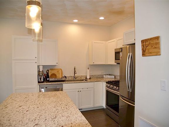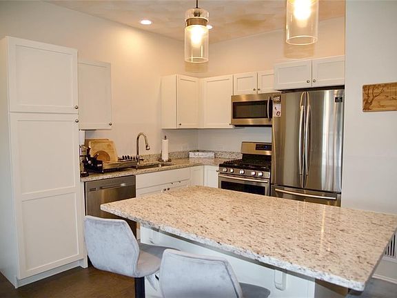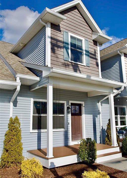Like new 2 year old townhouse with inviting front porch. First floor eat in kitchen with granite counters and stainless dishwasher, microwave, gas stove, refrigerator, open living/kitchen space. First floor bedroom/office with access to full bathroom with walk in shower and granite counters, walk in closet, laundry room on first level. Spacious second level with bonus room/office, great space to work from home or relaxation, additional walk in closet. Second bedroom with vaulted ceiling and good size closet. Full bathroom on second level. Large unfinished basement, great for storage! One car spacious detached garage. Energy efficient gas heat, central air, on demand water.