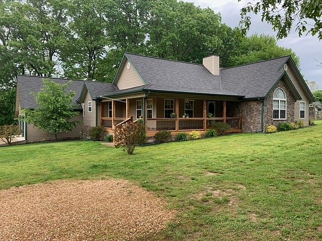 Enjoy the sunsets from the porch of this one-of-a-kind country home located just a short drive from town or Lost Bridge Marina and Beaver Lake. 3 bedrooms, 3 baths, spacious living with a beautiful rock fireplace, cozy kitchen with stainless steel appliances and a propane cooktop, granite countertops, and ample wood cabinets. The main bedroom features a wood burning stove and a private en-suite with a separate tub and walk in shower. Above the garage you will find an unfinished bonus room with tons of potential. Owner has designed part of the garage into "The Rusty Nail" a fun built-in bar area for entertaining guests. Land includes a chicken coop and room for animals to roam. This home offers an abundance of Southern charm and open space.