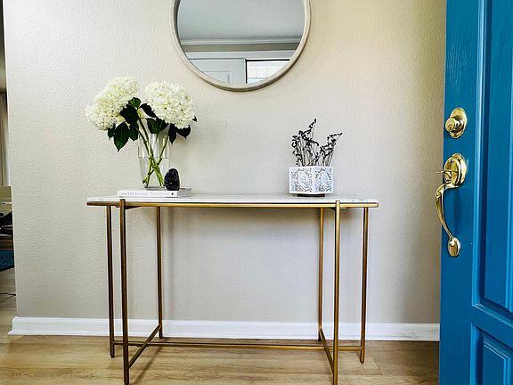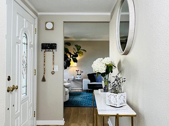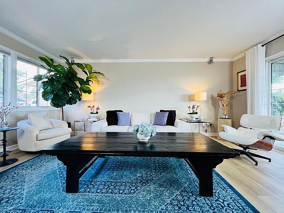 Beautiful, spacious, and immaculately maintained home located within the desirable north valley rim neighborhood of Santa Clarita with gorgeous, expansive, and unobstructed views of the Santa Clara River Valley and adjacent San Gabriel and Santa Susana Mountains. This home is perfect for outdoor and indoor entertaining and comfortable living. Containing three bedrooms and two bathrooms, this spacious and well designed Mid-Century Modern house includes a beautiful interior with fresh paint and flooring, ample lighting and widows for excellent cross-ventilation. The design and layout of the house allows for ample circulation and furniture placement within the space, while still maintaining its charm and quaintness. The house includes a well apportioned kitchen layout and is equipped with a gas range and vent hood, refrigerator, dishwasher, and garbage disposal and plenty of storage. The three bedrooms are large and can accommodate king or queen size beds. The two bathrooms have been tastefully updated/remodeled and include an en-suite principal bathroom. The electrical and HVAC system are powered by the rooftop solar panels with subsequent power provided by SCE, when needed. A side by side washer and dryer are provided and located within the two-car garage (parking is also available along the driveway and can easily accommodate three cars). Both the front and rear yards are beautifully maintained with an automatic sprinkler system. The rear patio area has expansive views of the valley and include use of the outdoor furniture. It also contains a number of fruit trees, including avocado, lemon, grapefruit, and apple. Renter is responsible for all utilities and trash service. Owner pays for Gardner. No smoking. Parking along driveway or within garage only.