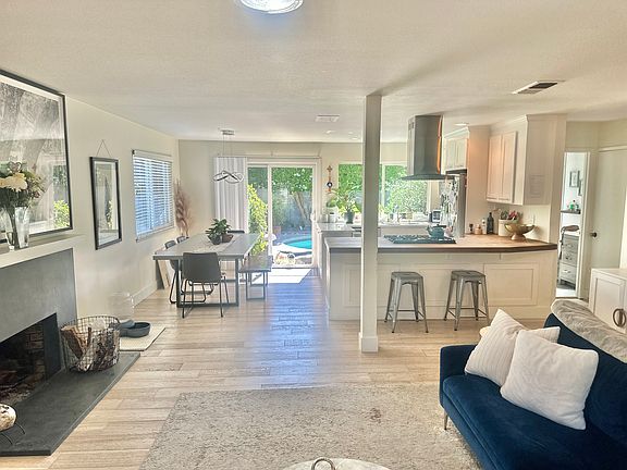 Fully renovated in 2020, this beautifully furnished three-bedroom, two-bath home blends modern comfort with timeless style. The interiors feature engineered oak wood floors throughout, kitchen with quartz and butcher block counters, and stainless steel appliances. The primary suite includes a luxurious ensuite with a soaking tub and elegant tile finishes, while the second bathroom offers a walk-in tile shower with a glass surround. Step outside to a spacious backyard oasis with a sparkling pool, charming gazebo, cozy fire pit, and BBQ, perfect for entertaining or relaxing. The property has a fenced front yard with abundant flowers, a nectarine and lemon tree, providing fresh, seasonal fruit. Move-in ready and fully equipped, this home offers both convenience and lifestyle. Available unfurnished and without utilities at a lesser rate. Two off-street parking spaces, no garage. Storage shed available.