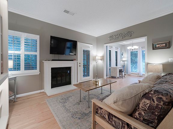 PRIVACY, screened porch on back overlooking wooded area with complete privacy. Imagine the convenience of condo living with the privacy of a home in the forest ! PERFECT, move in condition. This owner has lovingly improved every inch of this cozy home. Hardwood floors throughout. Crown molding, 9 ft ceilings,brick fireplace, linen closets, pantry, walk in closets, attic storage, full basement, so many amenities not usually found in a condo. Classy complex that is expertly maintained with a beautiful pool just a few steps away. Talk about convenience, EVERYTHING is just minutes away, shopping, restaurants, Hoover MET, walking trails, dog parks, pickle ball, Hoover rec center and all of the Hoover parks and recreation. GREAT roommate set up with each bedroom having it's own full bath. Washer/dryer & refrigerator all remain and are about a year old. TV over fireplace has sound bar and surround sound and remains. Wood plantation shutters on most windows.OPEN HOUSE SUNDAY 2-4, 9/15/24