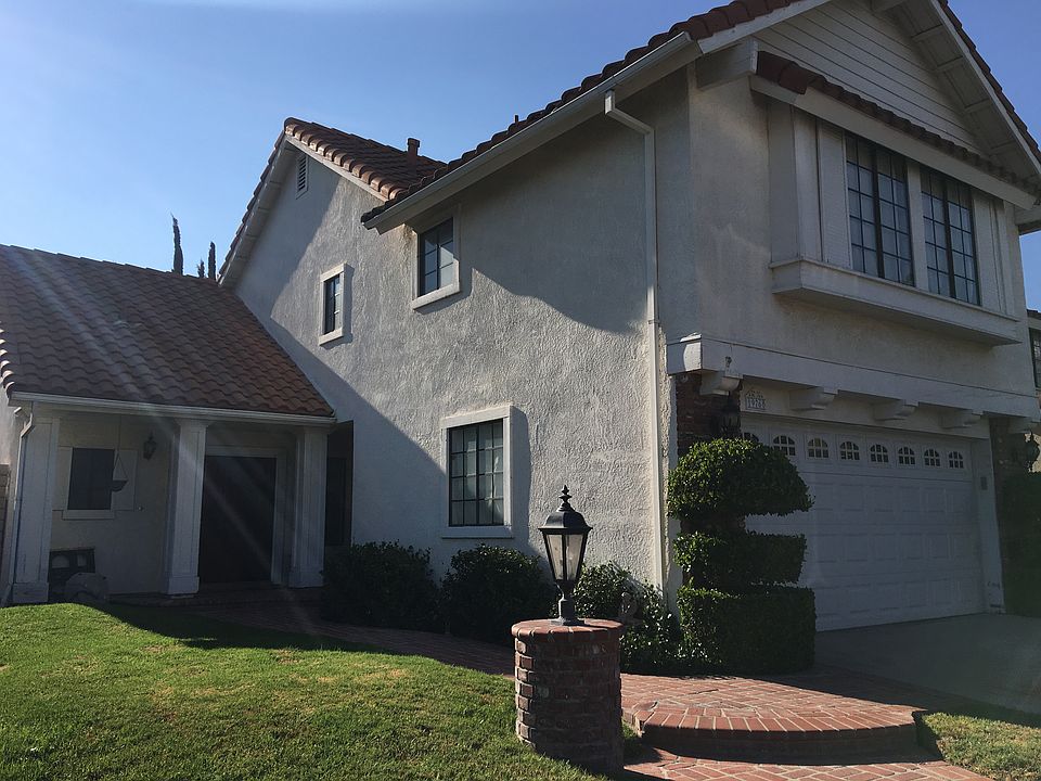 WELCOME TO PORTER RANCH ESTATES,A PRIVATE 24HR. GUARDED GATED COMMUNITY, This 2 story beautifully family home has been remodeled. Enter thru a double door entry and be greeted by Brazilian hardwood Cherry floors throughout the lower level, and a custom stair case, and handrails to match. And custom fireplace mantle, The gourmet chefs Kitchen has been fully remodeled with new cabinets (with soft-closing doors and pull-out shelves), granite countertops, tumbled stone backsplash, moveable island, new tile floor and new KitchenAid double ovens, cooktop, microwave and ultra quiet dishwasher.. Large family room with brick fireplace has articulating mount for flat screen TV and surround sound speakers in ceiling. All 3-bathrooms have been remodeled with new cabinets, sinks, flooring and stone countertops Large Master with window seat and walk-in closet. Bedrooms with mirrored closets, window seat with built-in cedar chest, and closet shelving/drawers. Whole house fan provides nice breezes and reduced air conditioning costs. Nice sized back yard with covered patio, fruit trees, and planters. Lots of parking across the street. Great neighbors. Secluded, safe neighborhood with 24 hour guard gate and patrols. Two huge community swimming pools, jacuzzi, picnic area, tennis courts, children's play area, and extensive park area. Freshly painted and move-in ready!...