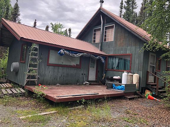 Large furnished dry cabin located north of Willow, near Sheep Creek! Large kitchen has propane fridge that stays, roomy dining area. Living area and one bedroom on main floor, with a large loft area for second bedroom. Massive wood stove will keep you toasty year round. Located several lakes, rivers and creeks! Great area for four wheeling and snow machining. Property has fire pit and outhouse.