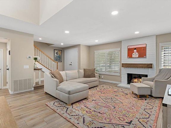 Pride of ownership shines in this remodeled, 3 bedroom, 2.5 bath, 1,492 square foot townhome with a private backyard and attached two-car garage. The home is thoughtfully upgraded with CoreTec luxury vinyl plank flooring, recessed lighting, plantation shutters, and central AC, plus a brand-new roof for peace of mind. The welcoming front patio leads into a light-filled living room with high ceilings and a fireplace, flowing seamlessly to the dining area and kitchen. The remodeled kitchen is warm and pristine, showcasing updated cabinetry, quartz countertops, stainless steel appliances, breakfast bar seating, and a lovely kitchen nook that opens to the large backyard patio and two-car garage. Upstairs, the primary suite offers a private balcony, en suite primary bath with dual sink vanity, and walk-in shower. The second floor is complete with two spacious secondary bedrooms with ample closet space, and a beautifully finished additional bath with shower-bathtub combo. Enjoy amenities within the tight-knit Vida Pacifica community, including a recently resurfaced pool and spa, and a playground. Ideally located 3.7 miles from the beach and downtown Encinitas, and just minutes to Flora Vista Elementary, Diegueno Middle School, Trader Joe’s, Sprouts, Target, parks, and favorite local coffee shops and restaurants. This inviting townhome combines comfort, convenience, and coastal living in the heart of Encinitas.