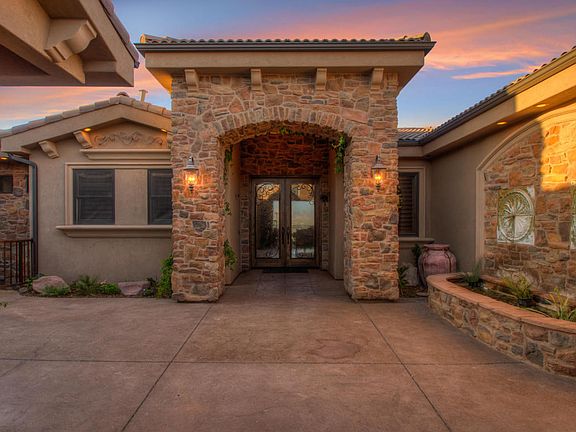 Enjoy spectacular views of Pine Mountain, Zion's Canyon & St.George with it's magnificent City Night Lights from this custom luxury home in the prestigious gated community of Stone Cliff. You will love the master chief built-in barbeque from your covered deck. SQ. FT.taken from County Records along with other items. Buyer to verify all listing information. 5th Bedroom & SQ.FT includes Casita