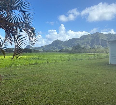 This 3 bedroom, 2.5 bath townhome is centrally located in Lihue close to airport, shopping, schools (public and private), churches, hospital, Kalapaki beach and Nawilliwilli harbor. There are 3 upstairs bedrooms with 2 bathrooms and a laundry area. The master bedroom has a walk in closet. The large living/dining areas and well appointed kitchen are on the first floor. There are wonderful views of the mountains from the master bedroom and back lanai, with large pasture areas out