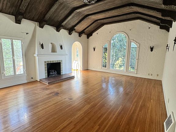 Breathtaking, massive, upper-level owner unit in historic Los Feliz Spanish. It must be seen to be believed. Original period details throughout. There is a new stove, fridge, and washer/dryer. Working fireplace! Original light fixtures throughout. Rear large patio off master and another one adjoining the dining room. Includes two off-street parking spots (tandem) with car charger. Designed by architect Max Maltzman and soon to be designated historic - The Sam Sharpe Triplex. Just blocks. to Griffith Park and walkable to the best of Los Feliz and Silver Lake. Tenants pay water, gas, and electric.