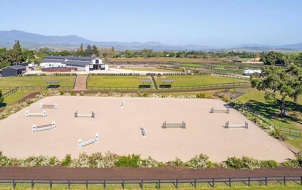 The estate spans 20 fully usable acres in the heart of the Santa Ynez. The striking East Coast style barn, was fully modernized in 2019 with oversized stalls, soaring ceilings, and a design that emphasizes airflow, safety, and effortless use. Surrounding the stable, irrigated pastures with custom shelters and gentle rolling hills showcase thoughtful planning and investment at every turn. A new 820' well, new underground electrical systems, and a full-property generator ensure reliability and abundance. Utilities have been extended to the designated build site, where a residence is already in the permitting process. More than a property, Fairfield Farm is a legacy estate - a place where world class equestrian facilities meet timeless California charm, framed by sweeping mountain vistas and the serene lifestyle of the Santa Ynez Valley.