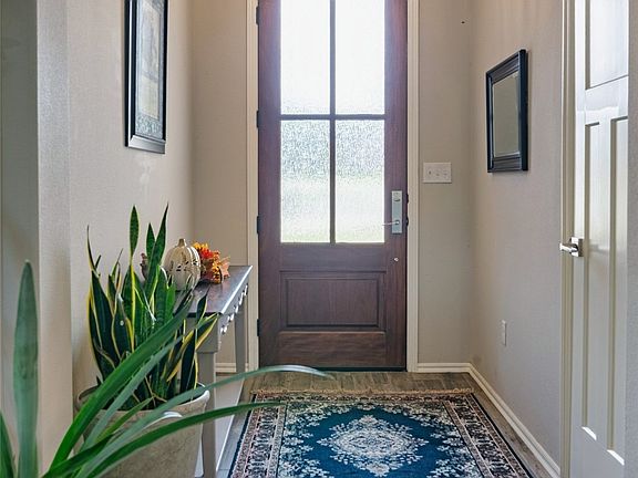 Like-new home built in 2021 in the desirable WindRidge Addition. This 4-bedroom, 2-bath, 3-car garage property sits on a ¾ acre lot and offers an open floor plan designed for modern living. The kitchen boasts 10’ ceilings, tall painted custom cabinets, large granite island, walk-in pantry, stainless steel appliances, gas cooktop, built-in microwave and oven, and a pot filler. The kitchen opens into a spacious living room highlighted by a 17’ vaulted ceiling, wood-look tile flooring, and a stone fireplace with wood mantel.