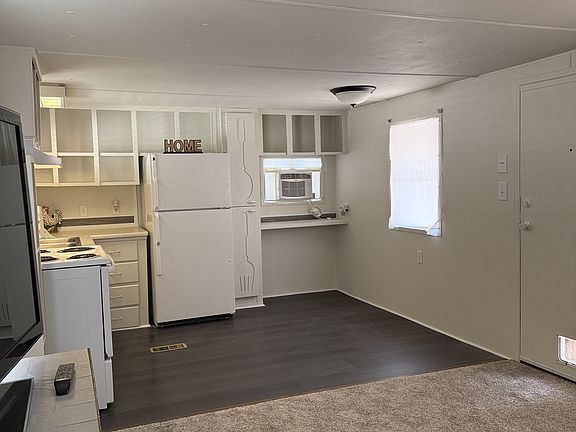 All totally remodeled single wide in sparkling condition..New carpets,floor coverings,fresh paint..one bedroom could be used as a closet..Carport with entry to home. New kitchen and great room Even and enclosed patio could be used as a catio..Rent is $725 and includes pool and rec facility