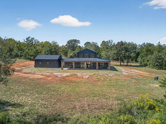 Stunning Custom All-Black Barndominium on 17 Acres in Lindale ISD Nestled in the serene countryside of Lindale ISD, this one-of-a-kind, custom all-black barndominium offers an exceptional blend of modern luxury and rural charm. Situated on 17 expansive acres, this property is the ultimate retreat for those seeking privacy, comfort, and natural beauty. Boasting 5 spacious bedrooms and 3 sleek bathrooms, the interior features soaring ceilings and large windows that flood the home with natural light, creating an open and airy atmosphere throughout. The engineered hardwood floors add a touch of sophistication, while the home sound system provides the perfect soundtrack for everyday living. The heart of the home is its kitchen, complete with a 48-inch gas range, quartz countertops, and a hidden walk in pantry for all your culinary needs. The open-concept design flows seamlessly into the living area, making it an ideal space for entertaining or relaxing. Step outside and enjoy the breathtaking views of your land from the expansive 900 sq ft back porch, equipped with a 16 ft bifold door that opens the space even further, merging indoor and outdoor living. Whether you’re savoring a morning coffee or hosting friends and family, this space is perfect for taking in the natural surroundings. The land itself is partially wooded and partially cleared, offering ample space for outdoor activities, gardening, or future development. Plus, water has been run to an additional location on the property, which would be ideal for a future guest house or additional home site. Located off a private road and surrounded by trees, this property offers an abundance of privacy and peace, making it the ideal spot for those seeking true country living without sacrificing modern amenities.