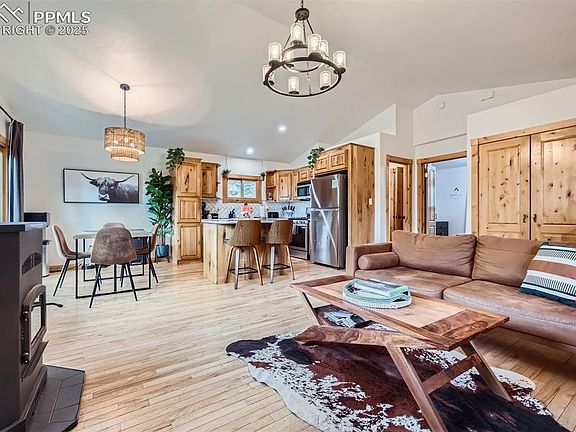 Seller Incentives Possible! Property Highlights: Colorado Mountain basecamp| Proven Short term rental income | OWNED Solar Panels | 8.11 acres of privacy Updated interior | Approx. 6 mi to BLM land | 11 mi to world famous fishing spots |35 min drive to Woodland Park |1 hr drive to Colorado Springs | See property photos for floor plan. Escape to your dream mountain retreat along the scenic Gold Belt Byway! This fully furnished 3-bedroom, 2-bathroom cabin sits on 8.11 private acres with sweeping Colorado views, modern upgrades, and established short-term rental income. Perfect as a full-time residence, vacation home, or investment property, it’s completely turnkey and move-in ready. The open-concept interior includes an updated kitchen with quartz countertops and modern appliances (2020), a spacious main-floor primary suite, and two stylishly renovated bathrooms. Cozy pellet stoves (2022) provide year-round comfort, and a 6,000-watt owned solar system with net metering generates 350–750 KWH monthly, adding energy savings. Enjoy outdoor living with a wraparound porch and two rebuilt decks (2018, 2020), featuring distinctive Hayman burn scar railings. Relax or entertain with two fire pits, a gas grill, a ping-pong table, and private trails leading to panoramic vistas, a seasonal spring, and frequent wildlife sightings. Adventure is close at hand—just six miles from over 2,000 acres of BLM land for hiking, horseback riding, and ATV fun. World-class fishing and kayaking await less than an hour away at 11 Mile, Spinney, and Antero Reservoirs. There’s ample space for RVs, trailers, and boats—without the restrictions of an HOA. With a prime location near Colorado Springs, Breckenridge, Woodland Park, and Denver, this cabin combines mountain serenity with accessibility. Offering privacy, comfort, and income potential, it’s a rare opportunity to embrace the Colorado lifestyle.
