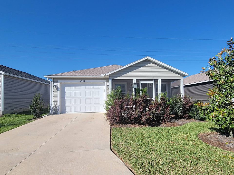 Home appraised at 290k! Clean inspection too. Here is you chance to get your very own 2/2 Villa built in 2023 OFFERED TURNKEY with NO BOND! Charming 2BR/2BA HIDEAWAY Model in the Village of Newell - Prime Location! Beautifully maintained 2-bedroom, 2-bath HIDEAWAY model located in the picturesque and highly sought-after Village of Newell. Featuring modern amenities and a thoughtfully designed open floor plan with vaulted ceilings, this home combines comfort, functionality, and style-perfect for enjoying the Florida lifestyle. As you arrive, you'll be greeted by Florida-friendly landscaping and an inviting screened front porch, ideal for relaxing outdoors. Inside, the bright and spacious living room boasts vaulted and peaked ceilings, creating a seamless flow into the dining area and kitchen-perfect for entertaining. The kitchen is a chef's dream with stainless steel appliances, GAS range, pantry, and a large center island for meal prep and casual dining. The primary suite offers a generous layout with a walk-in closet and an en suite bath featuring a walk-in shower with sliding glass doors for a spa-like experience. The second bedroom is perfect for guests or a home office, with easy access to the guest bath that includes a tub/shower combo and sliding glass doors. Additional features include: LUXURY VINYL PLANK flooring throughout (no carpet!) Upgraded ceiling fan 13' x 32' garage with attic access and plywood flooring for extra storage Water filtration system Rain gutters installed This home offers low-maintenance living and is ideal as a primary residence, vacation home, or investment property. Located just minutes by golf cart from Sawgrass Grove, Brownwood Paddock Square, and the future Eastport, with easy access to recreation centers, pickleball, shopping, medical facilities, and the Florida Turnpike. Golfers will love the proximity to Mickylee Pitch & Putt, Southern Oaks Championship Course, and Jubilee Putting Course-a true golfer's paradise! There are some staging decor items that do not convey with sale of home. Don't miss this opportunity to own a stunning home in one of the best locations in The Villages!