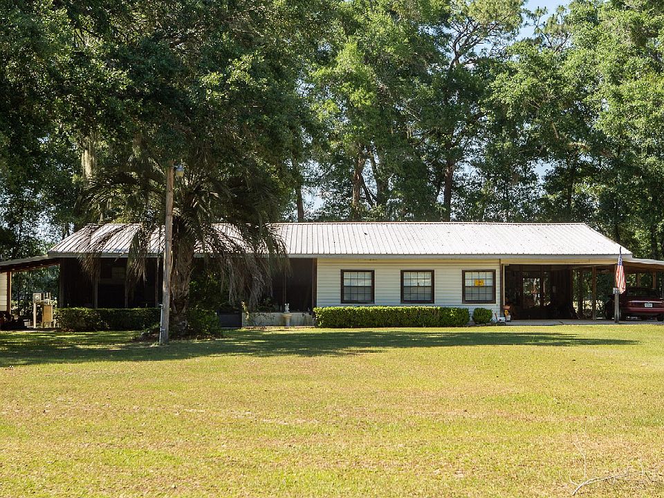 3 bedroom 3.5 bath home on 10 acres in Live Oak. Large family room. Front & back screened porches. Property has two additional wells & septics that could be additional homesites. Outbuilding could be hobby room or MIL suite. 20x30 covered shed with concrete slab. Large oaks. Property is cleared, would make great pasture for animals. No flood zone & no restrictions.