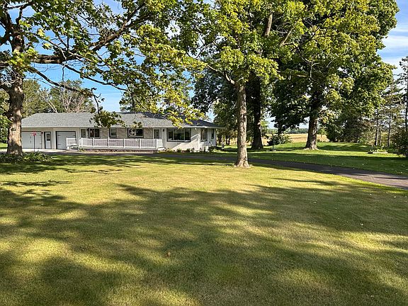 Beautiful well maintained home on 1.8 acres just 1 mile from town. Georgius mature apple trees, productive and delicious grape vine as well as other botanical delights. Granite countertops, hardwood floors, stone and stucco exterior, new blacktop driveway, new roof, new furnace and recent addition to garage with and 2 detached garages. Bed, bath, kitchen, and laundry all on the same level with attached garage. Move in ready.