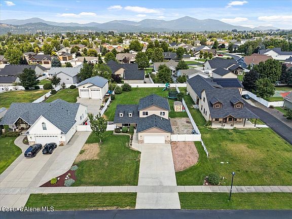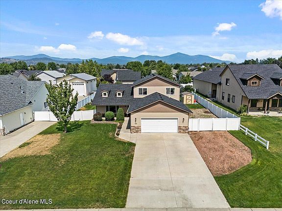 SHOP LOT! This is what you've been waiting for—an updated 4-bedroom, 2.5-bath home in the sought-after Prairie Meadows community. The home features a new roof (2023) and an expansive, fully fenced yard on nearly 1/2 acre, ideal for outdoor enjoyment with raised garden beds, fruit trees, and a large composite deck. Nestled in a quiet cul-de-sac, there's ample space for a shop and RV parking, just steps from parks, pickleball courts, paved walking trails, and schools. Inside, this bright home boasts vaulted ceilings with skylights, an open concept living room, a main floor primary suite with a large walk-in closet, and an upstairs en-suite with a jetted tub. Located just 30 minutes from Spokane Airport and 15 minutes from downtown CDA.
