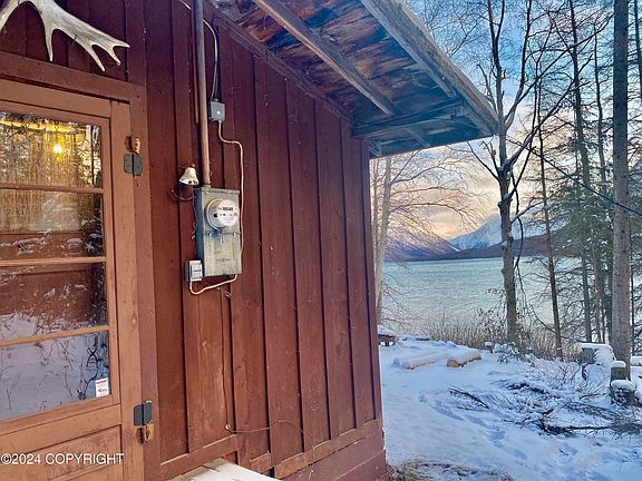 This Cabin was originally the home of '' Mel's Float Plane Service and Guide'' in the 50's. A cozy log cabin with a large mud room ,Large main room w/kitchen, one bedroom and one bath.and finished basement. Original windows looking out to the Kenai Lake and a private beach. .This is a wonderful sunny location for someone who wants access to the Kenai Lake and River right from your own beach.