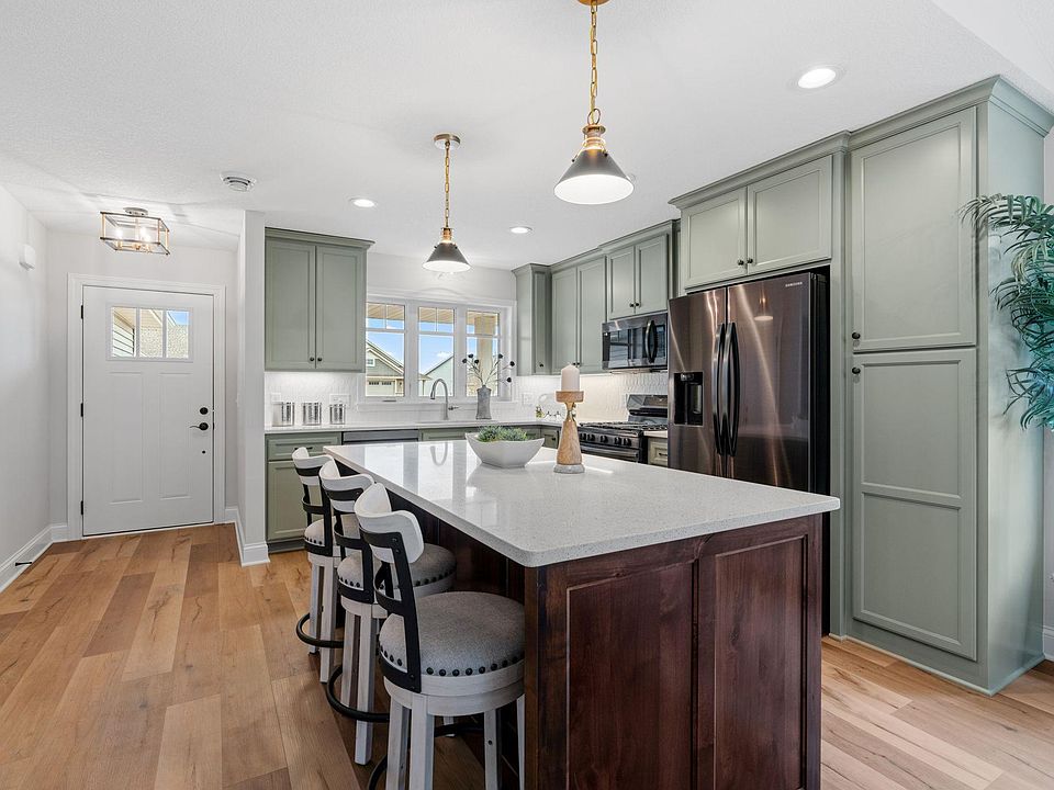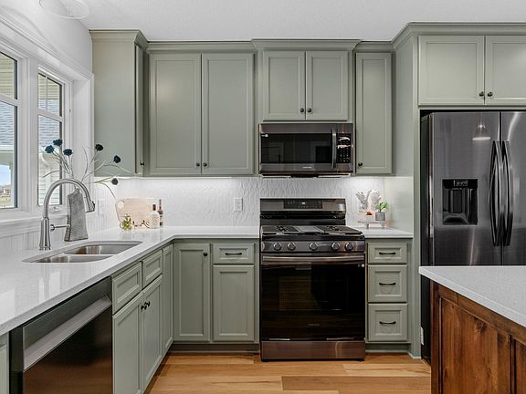 Immediate Possession Possible. Custom-built slab-on-grade villa by Guidance Homes, Inc. located in a new association-maintained neighborhood close to the Forest Lake YMCA and library and only minutes from I-35. This gorgeous home features an open floor plan with a spacious kitchen and dining room, living room with gas fireplace, and cozy sunroom with vaulted ceiling and tons of windows. Private owner's suite with master bath and walk-in closet, 2nd bedroom, and full bathroom. In-floor heat, custom woodwork and cabinets, granite countertops, fireplace, and 20' x 25' sheet-rocked garage with a large storage area above.