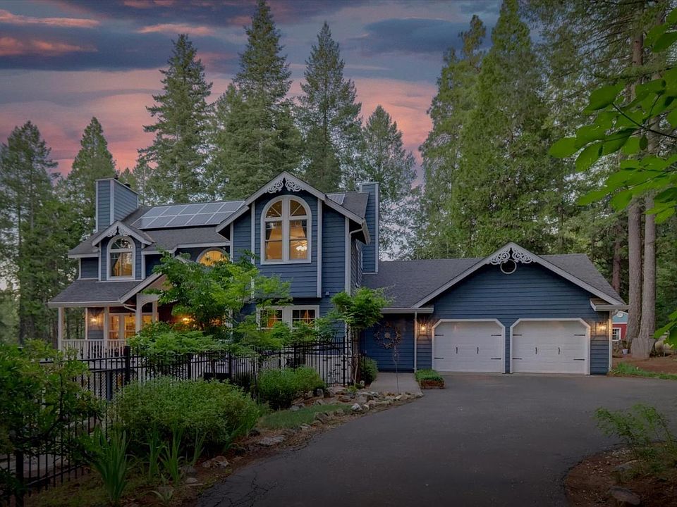 Escape the ordinary and live your Sierra dream in the Tahoe National Forest. Desireable neighborhood just minutes from Scotts Flat Lake and historic downtown Nevada City, this custom 3,400+ sq ft modern Victorian farmhouse lives as a comfortable 4 BEDROOM luxorious home. Step through the porch into warm light-filled spaces that feel like home from the moment you enter. The chef's kitchen features Monogram appliances, granite counters, and a generous island that opens to the family room perfect for entertaining or cozy nights by the fire. Downstairs, a private ensuite offers flexibility for multi-gen living, guests, or a remote office. Upstairs, the primary retreat opens to a balcony overlooking the tall pines - morning coffee spot. Expansive outdoor kitchen and covered dining for year-round gatherings. Owned solar + Tesla Powerwalls keep energy costs low. Incredible downstairs entertaining space, creek at the bottom of the property, RV/boat parking, she-shed,landscaped grounds with koi pond, top of property is fenced. MILES OF THE BEST HIKING/BIKING TRAILS RIGHT OUT YOUR FRONT DOOR! Every detail was designed for comfort, independence, and the freedom to live closer to nature -this house is a lifestyle! A MUST SEE TOO MUCH TO LIST - WATCH THE MEDIA! All Inspections Completed.