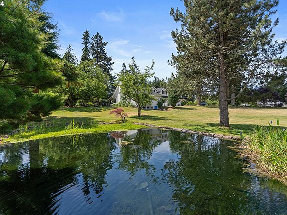 Magical country living near it all awaits in this almost 2-acre dream refuge that lives like a wedding venue plus bonus 1,063 sf detached barn offering office/shop/guest space! Fruit orchards, sweeping lawns, a picture-perfect pond with waterfall, updated farmhouse style, and the remodeled heritage barn make this storybook setting a versatile private retreat, potential horse property, and more. Near top West Linn schools and amenities with a gourmet kitchen, party-ready dining with fireplace, statement beamed and vaulted ceilings, freshly painted, and with new carpeting. From the newly replaced roof to the back-up generator for peace of mind, generous bedroom sizes, charming window seats, and verdant views, the entire property simply exudes comfort, grace, and an incredibly peaceful ambiance. Upstairs the primary bedroom offers a gracious ensuite bathroom with soaking tub, seated steam shower, dual walk-in closets, and a large picture window gazing out over the orchard. The barn is a stone's throw from the main house and features a vast upstairs office/flex/studio space with expansive property views and guest accommodation options. The possibilities are endless and the country living is dreamy in wonderful West Linn with easy access to Oregon's top-rated schools, supermarkets, shops, and restaurants all within a 5-minute drive.