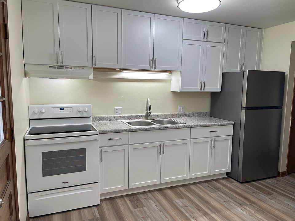 Updates in bathroomNewly remodeled apartmentWalk in pantryNew lvp flooringNew kitchenPrivate back patio