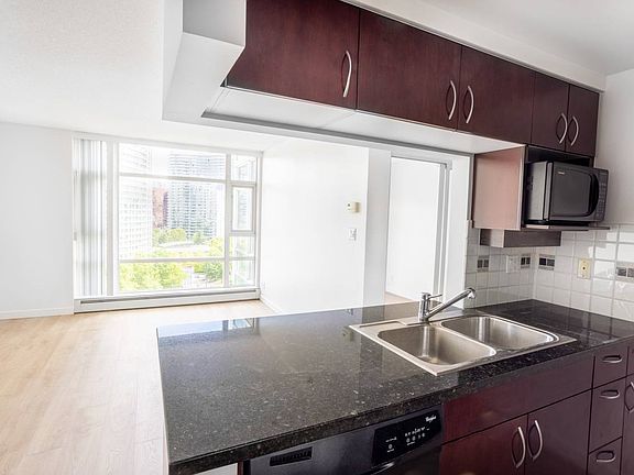 Located in the prestigious Aquarius II at Concord Pacific, this stunning rental overlooks the Yaletown Seawall and offers a prime location within walking distance of Urban Fare, the Liquor Store, and a variety of upscale dining and coffee options. This desirable complex boasts an array of top-notch amenities, including a pool, hot tub, steam room, gym, media rooms, meeting rooms, and dedicated concierge service. The unit features an open kitchen with a gas stove, fridge, and ample counter space, seamlessly flowing into the inviting living room - ideal for hosting guests. Enjoy captivating north-facing views of downtown and the mountains from the comfort of your home. The bedroom comfortably accommodates a queen-size bed, while a convenient den/solarium provides versatile space for a home office or additional storage. Recent enhancements include laminate flooring throughout, and the convenience of 1 included parking stall adds to the appeal of this exceptional rental property.