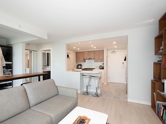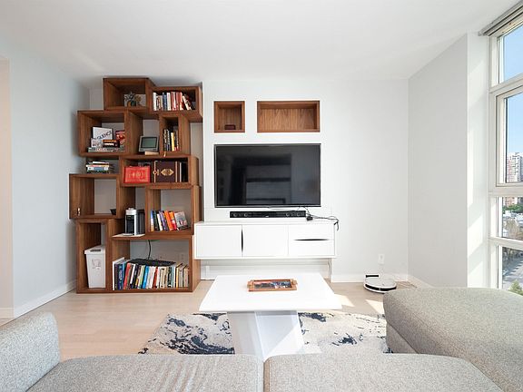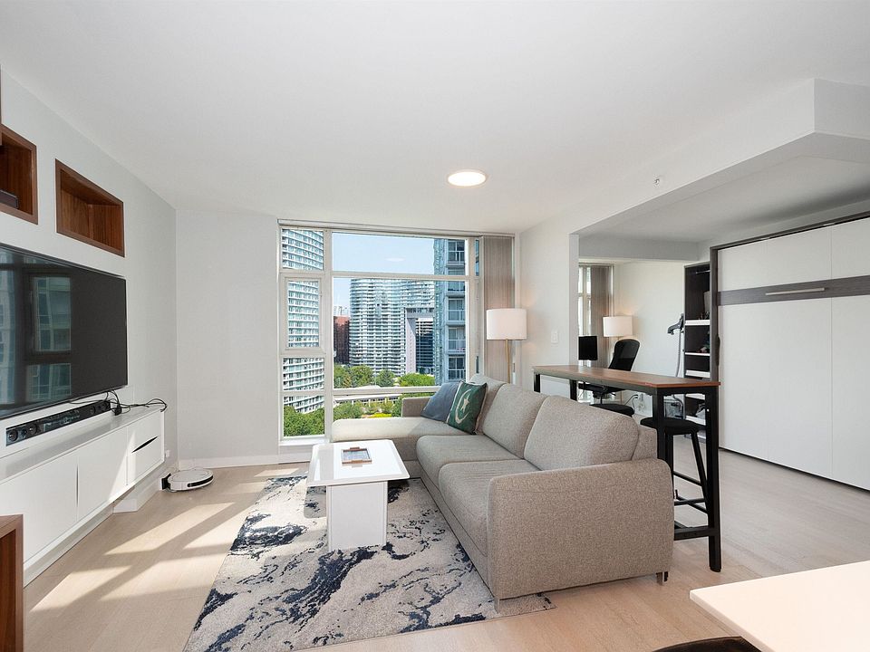Savvy opportunity to purchase this one-of-a-kind, fully renovated home with an open & majestic feel. Exquisite finishes featuring hardwood in the living area. Heated kitchen & bathroom floors. Timeless stainless steel appliances featuring a Viking gas range. Soft closing drawers, refined walnut bookshelf, and built-in entertainment cabinet with shadow boxes. Discreet Murphy bed with adjustable shelves for storage. Inspiring work from home space with captivating views. Insuite laundry, secured parking & access to your private resort with 24hr concierge, indoor pool, sauna, steam room, gym, theatre, meeting rooms & a tranquil courtyard with a pavilion for private functions. Elevate your lifestyle in a waterfront location in the world-class Yaletown neighbourhood, steps from urban amenities.