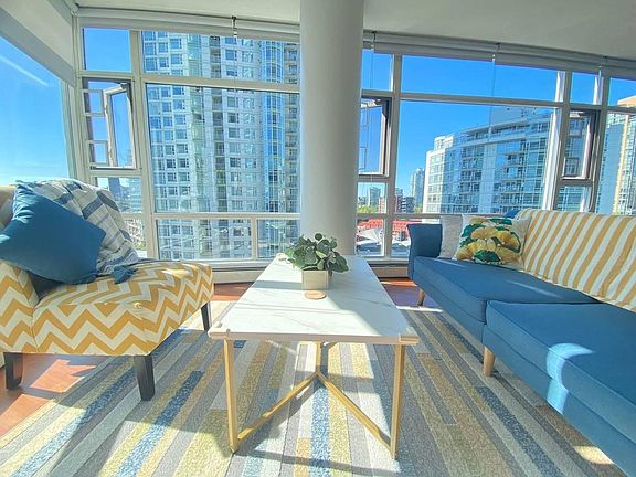 Stunning waterfront condo located in Yaletown with panoramic views of False Creek from every room. This spectacular two bedroom, two bath condo is located in the heart of the Marinaside Crescent neighbourhood. Floor to ceiling glass windows, Corner southwest exposure, Open concept living space with combination living room, dining room, breakfast nook and kitchen that's open to breathtaking views. Two well separated bedrooms offer enough space for a comfortable set up and a Den could be use as 3rd bedroom or office. The main bedroom is a large master suite with walk in closet & ensuite bath. Steps from city's great restaurants, Urban Fare, provance, OEB Breakfast, starbucks coffee shops, Roundhouse Community Center, Seawall, Beautiful Parks and within minutes walk to the Canada Line Station and False Creek Ferries. Property Features: -Sqft: 1264 -furnished (Newly Furnished) -Open Layout -2 Spacious Bedrooms + Office or 3rd BR and Den -2 Full Baths -1 Pantry/Storage Room -Stunning Views of False Creek -Floor to Ceiling windows -Balcony off of breakfast nook -Laminate Floors in Living, Dining & Bedroom -Tile in Entry, Kitchen, Pantry and bathroom -Stainless Steel Appliances -Granite Countertops in Kitchen & Bathrooms -In-suite Laundry -1 underground Parking Building Amenities: - 24 Hours Concierge -Fully Equipped Gym -Large Indoor Pool & Jacuzzi -Sauna & Steam Room -Billiards Room -Library -2 Theater Rooms -Meeting Room - Business center -Lounge/Party Room -Visitor parking -Bike locker Rental Requirement: - no pets - non smoking -Tenant needs to get tenant insurance -Reference & credit check required -Tenant pay for strata move-in and move out cleaning fee - 1 year Lease. - $5200 per mo (Hydro And internet not included) - no pets - no smoking (strata dont allow smoking in the building) - no airbnb -Tenant needs to get tenant insurance -Reference & credit check required -Tenant pay for strata move-in/out fee per strata law - credit check is require - 1st rent and half month security deposit required - 50% of monthly for security deposit - tenant is responsible for all hydro(electric) and internet