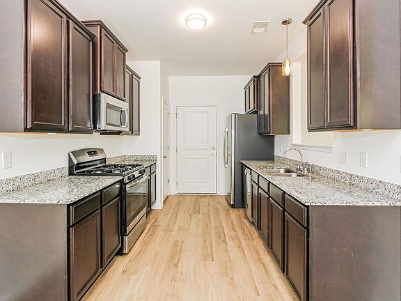 Spacious kitchenSliding glass doorStainless appliancesNew lvp flooringGranite countersPrimary suiteLight fixtures