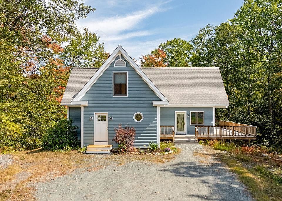 You will know you have found the right property when you come up the driveway and there are no other homes in site. Your 8.34 ac+/- is surrounded by woods, fields, nature and Bicknell Brook which borders over 125 acres in conservation land. In immaculate condition! The first floor has an open area kitchen/dining/living room, mudroom, first floor bath with washer & dryer. Kitchen with stainless steel appliances, new microwave, oak upper & lower cabinets, granite counter tops, sun filled breakfast area with bay window. Living room with hearth & woodstove to cozy up to this winter. 3 bedrooms and 3/4 bath on the second floor, and an abundance of closet & storage space. Beautiful oak floors and 6 panel wood doors. Walk out basement with recreation room, workshop/utility room, and storage room. Freshly painted interior, new decking & railings on the balcony deck off the primary bedroom, expansive wrap around deck, new 2 car detached garage with storage room above for your hobbies. Enjoy the Bicknell Brook and the waterfall cascades, nature trails, and the quiet rural country living offers. 57.58 additional ac+/- offered at $325,000. Minutes to I-89, Dartmouth College, Dartmouth Medical, VA, the Upper Valley & New London area.
