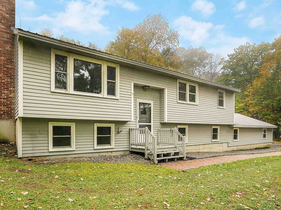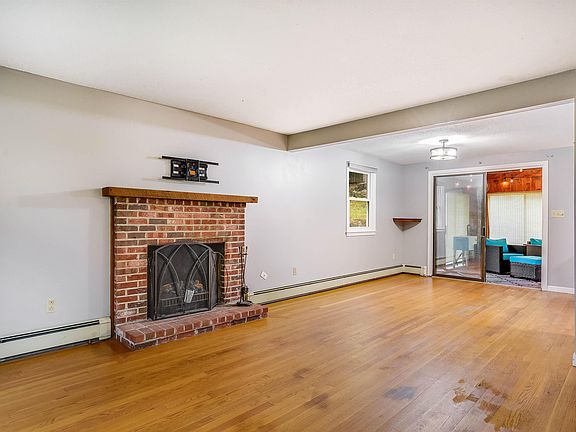 This delightful raised ranch is nestled up and back from the road and is just minutes from downtown Wilton. Cozy up in your living room in front of your wood fireplace with decorative brick mantle and hearth, or gather around in the dining room to entertain. The charming kitchen offers plenty of counter space and cabinets. Spend the summer evenings in your spacious 3 season porch or BBQ in the backyard. The first floor also hosts all three bedrooms: a bedroom with it's own 1/2 bath and 2 more bedrooms, plus a full bath. Downstairs is ample finished space to create an office, home gym, family room or more, with unfinished space for storage and laundry. This lower level connects directly to your 2 car attached garage to come straight inside from the winter weather that's just around the corner. A metal roof and public water are added conveniences! You will love the attributes of nearby schools, easy access to Route 101, an abundance of nearby town amenities in Wilton and Milford... this is the perfect home to call your own. Schedule your showing today!